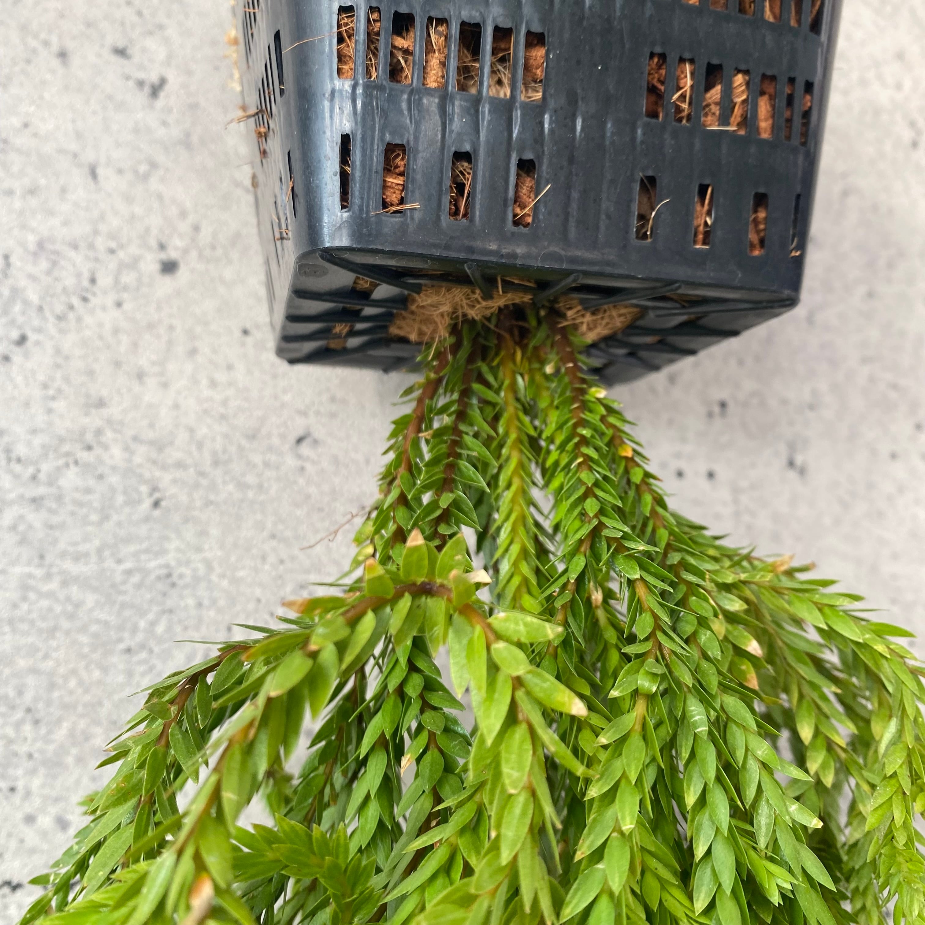 およそ4号サイズのスクエア逆さポットに植え込みました。