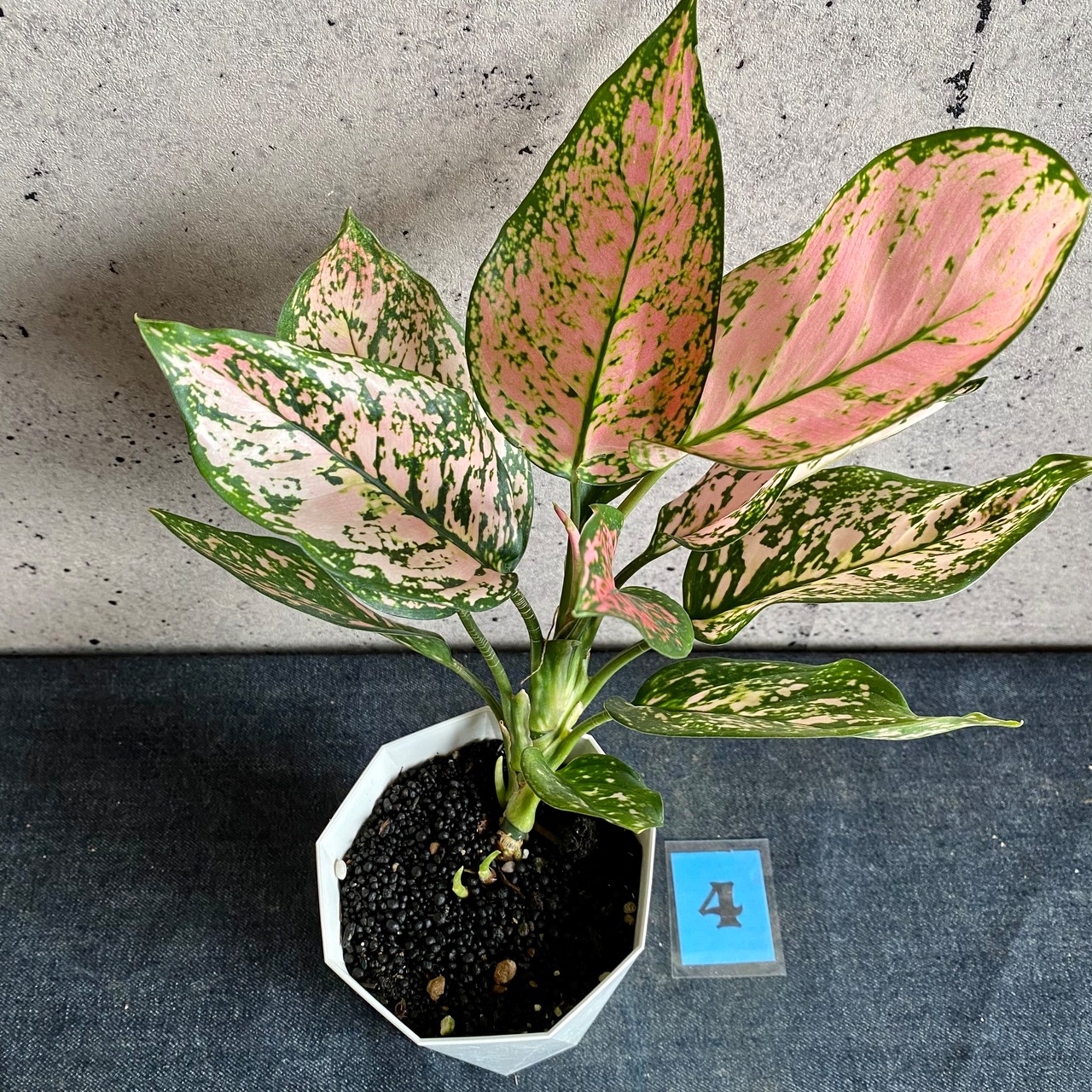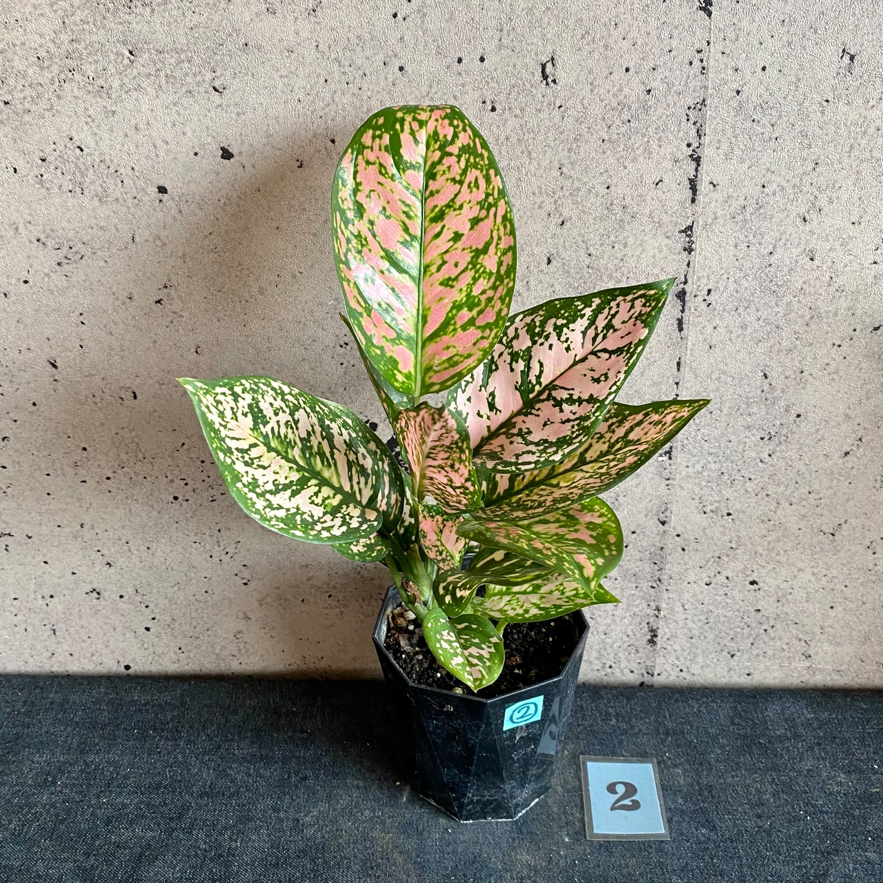 グリーンにピンク色の斑入りが美しいアグラオネマのレディバレンタインです。